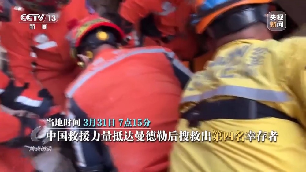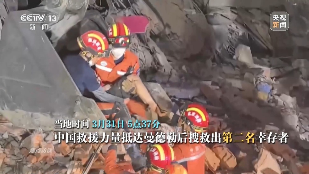 随着更多中国救援力量的抵达和搜救,更多被困者被救出。赴缅甸执行国际救援任务的中国救援队,在缅甸当地时间3月30日傍晚抵达受灾严重的曼德勒市后,立即展开救援。