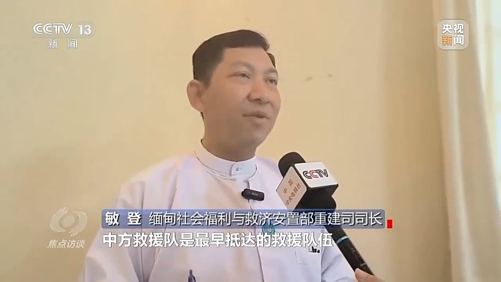 缅甸社会福利与救济安置部重建司司长敏登:中方救援队是最早抵达的救援队伍。中方派来经验比较丰富的救援队,带来专业设备,充足表现了中缅友谊。